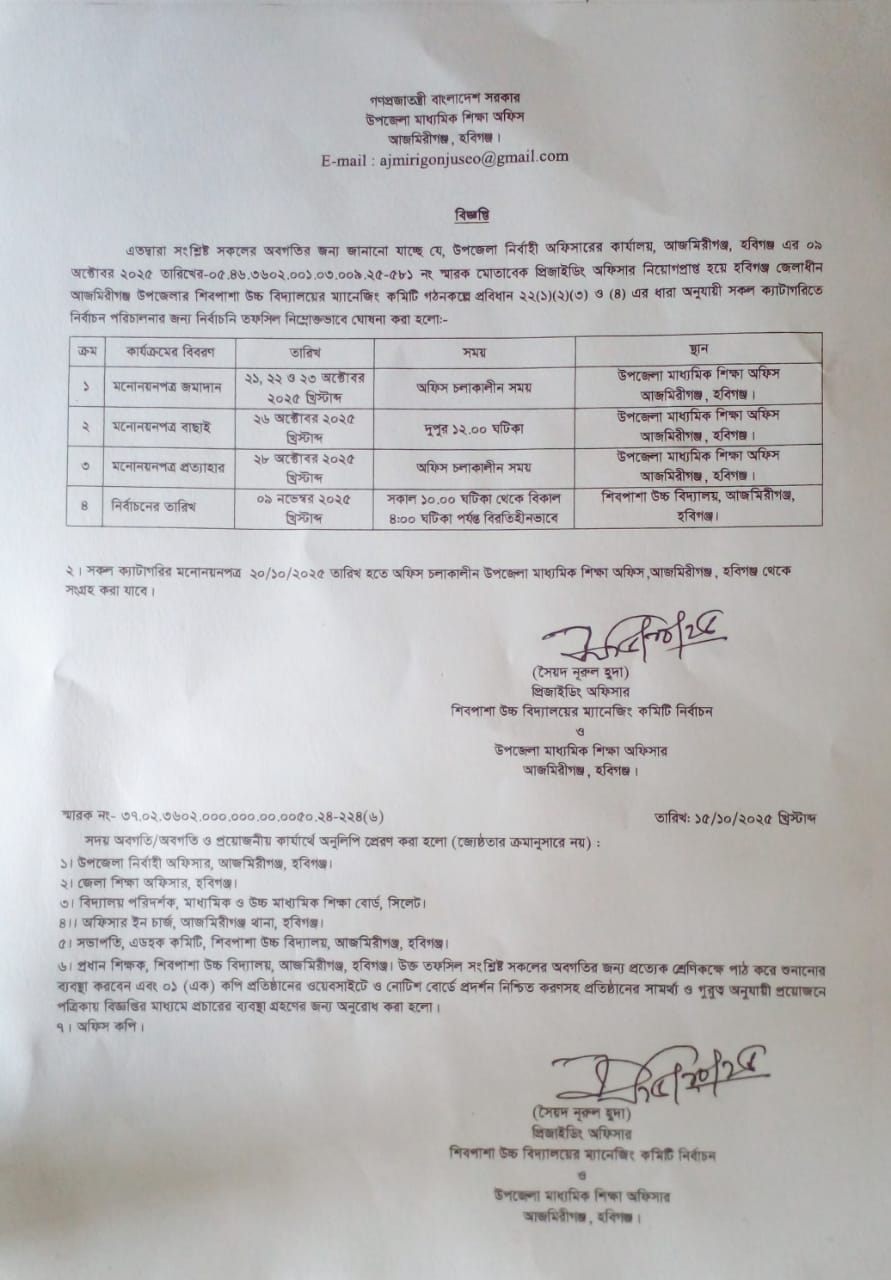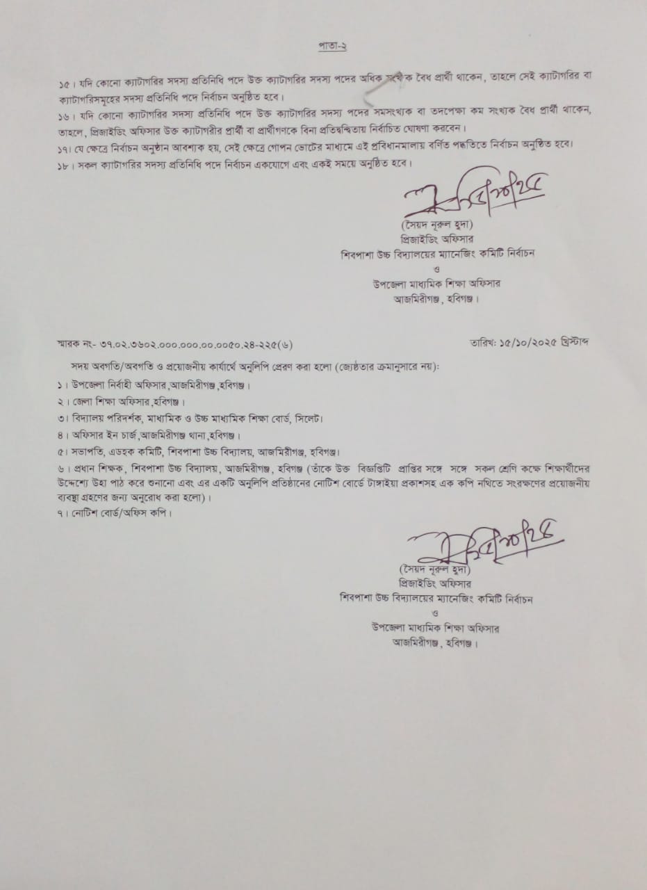 ম্যানিজিং কমিঠির নির্বাচনে তফসিল ঘোষনা